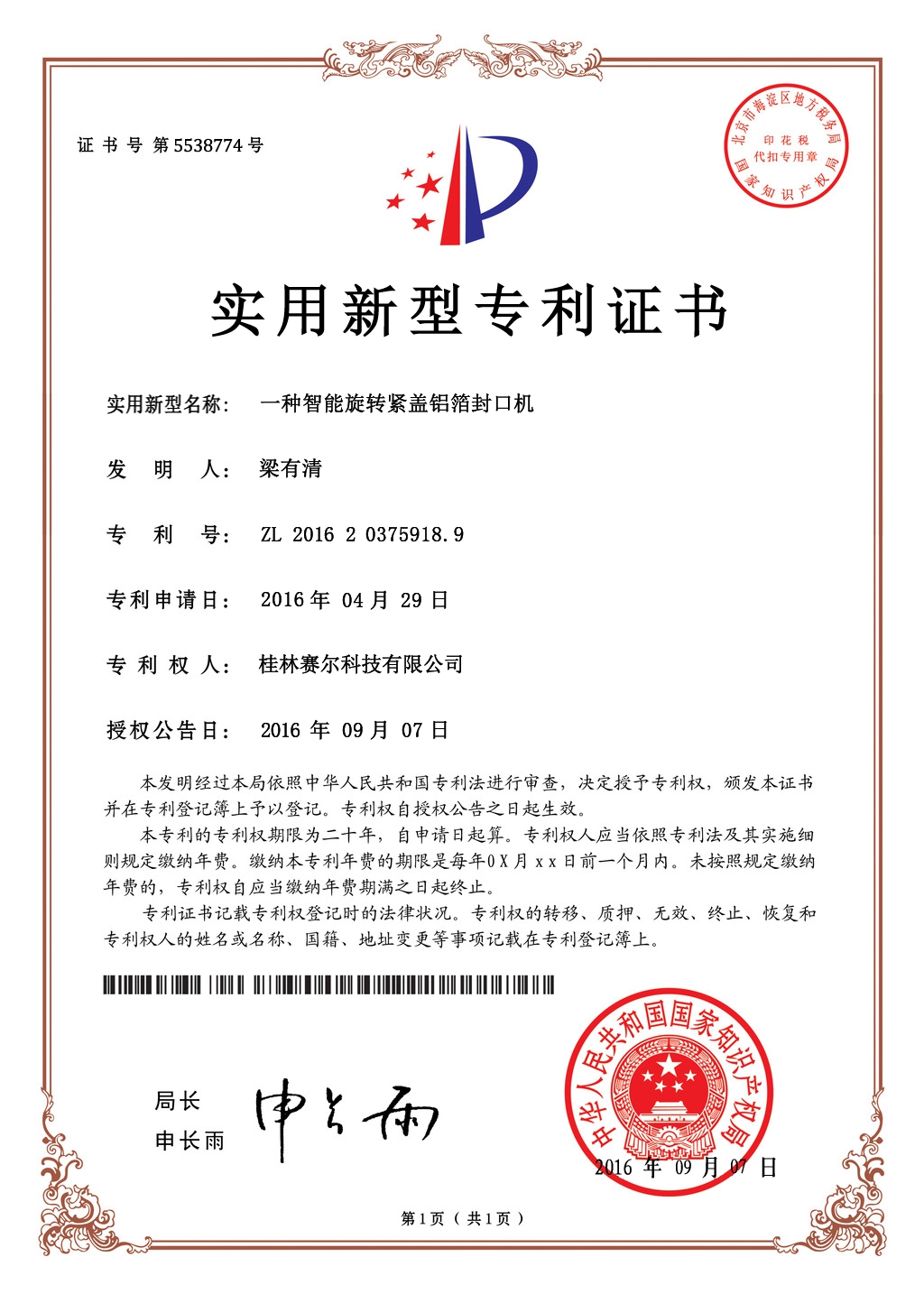 精益求精,賽爾研發(fā)出多項(xiàng)現(xiàn)代化鋁箔封口機(jī)技術(shù)并獲得專利,解決了市場(chǎng)多元化包裝時(shí)代的封口需求。