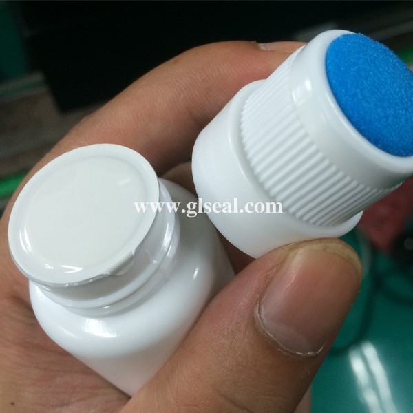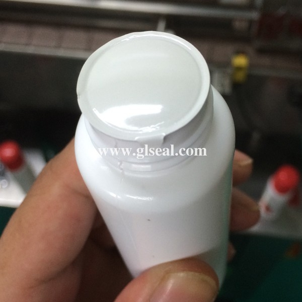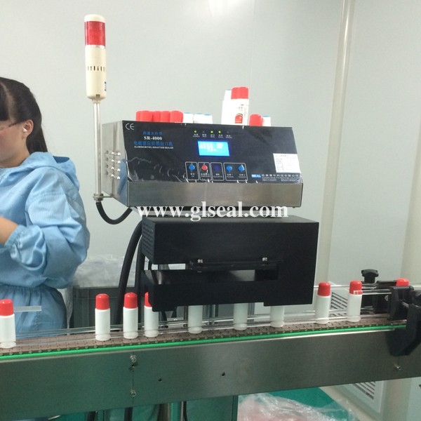 實(shí)拍某藥廠高蓋瓶子封口,蓋頂距鋁箔垂直高度為4.5cm,一般封口機(jī)無法實(shí)現(xiàn)正常封口,直到使用賽爾牌封口機(jī)。